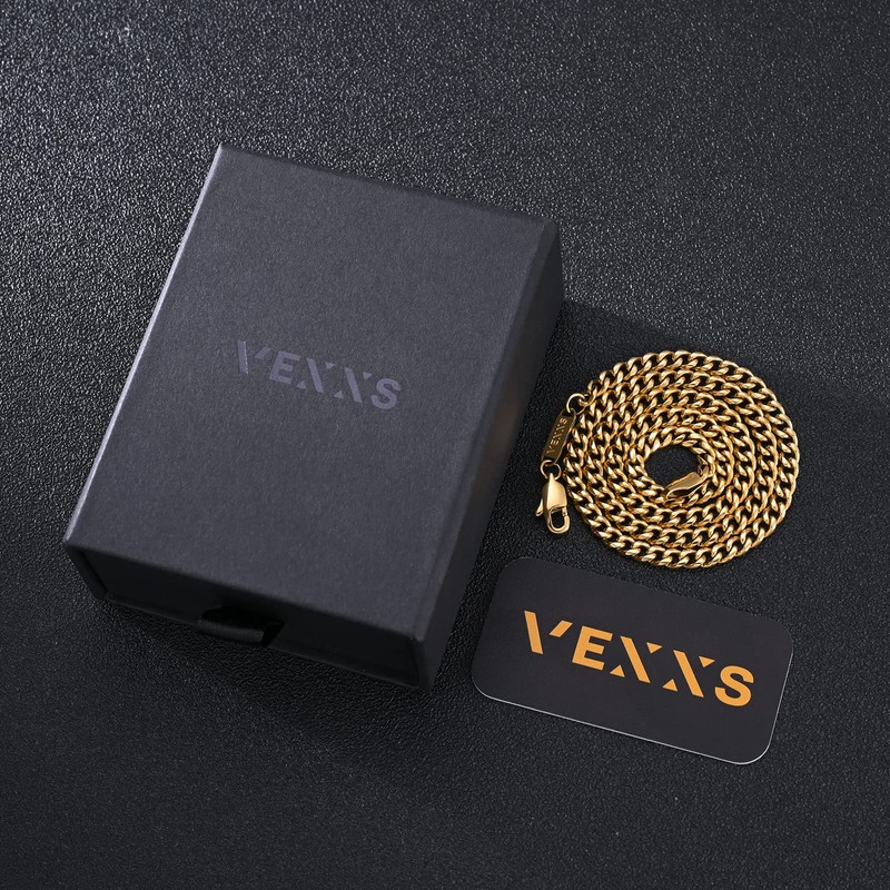 - 【No Color Fading】VEXXS gold chains adopt double electronic PVD Plating and delicately polishing for an everlasting shine. High-tech made necklace for men.