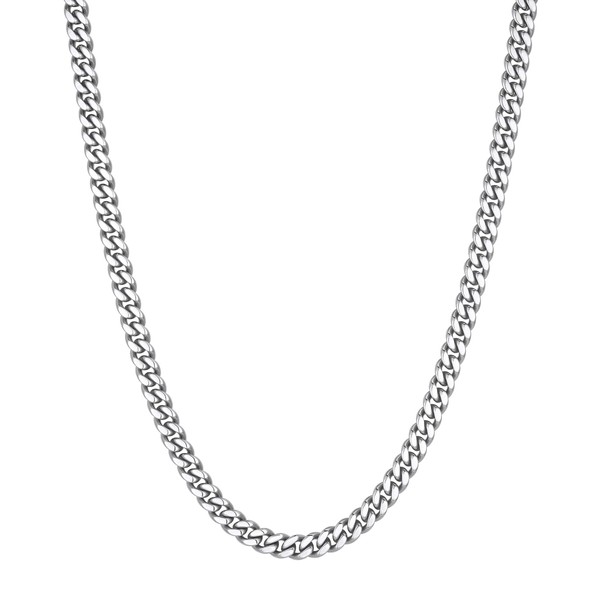 VEXXS Men's Gold Chain Flat Cut,18K Real Gold Plated Cuban Link Chain, Durable No Color Fading Curb Chain 4mm 5mm 6mm Men's Necklace (4mm-White Gold, Inches, 20.00)