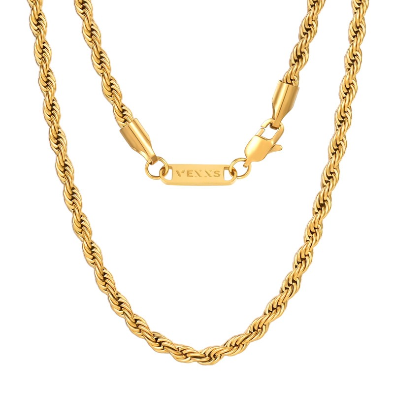 - 【Double-layer 18k real gold plated 】Premium 316L stainless steel Rope Chain Necklace is plated with 18K real gold and white gold twice . First class fine jewelry for you.