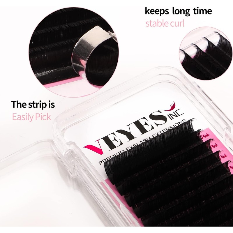 VEYES Individual Eyelashes 1:1 Classic Eyelash Extension 0.15 CC Curvature 8-16 mm Matte Black