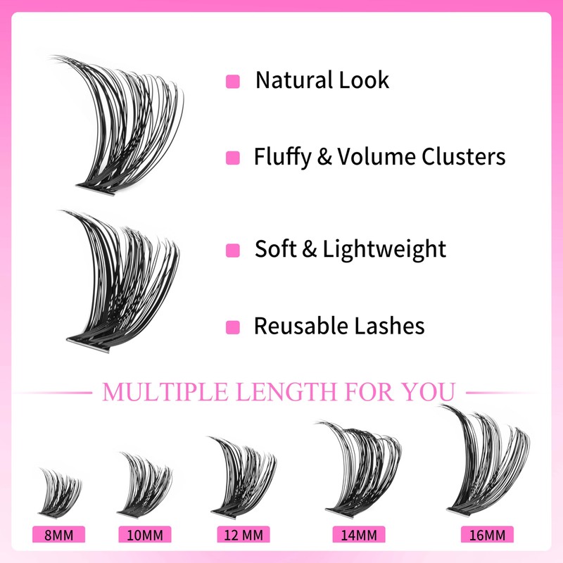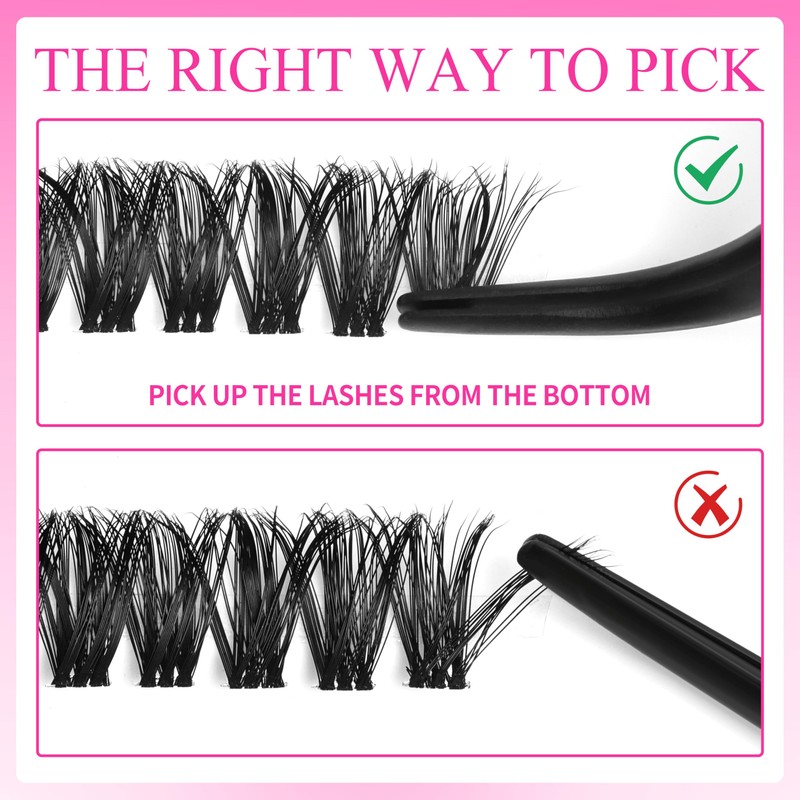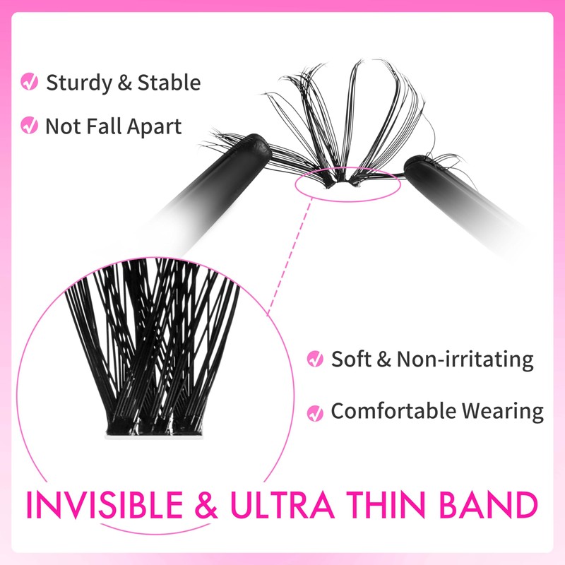 Eyelash Clusters Bands are made with new materials and technology so that the bands are thinner, softer, and harder to fall apart. The lashes are handmade with high-quality PBT fibers to ensure that the lashes are soft, lightweight, comfortable to wear, and look more naturally fluffy