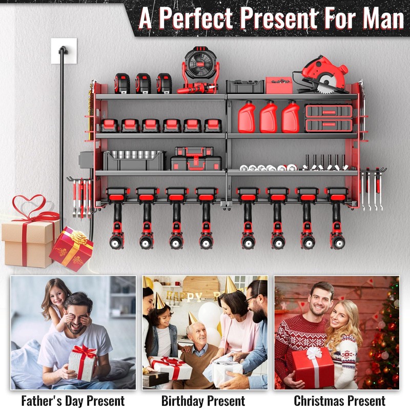 - Great Gift Idea: Designed to keep workbenches clear and maximize storage, this organizer is essential for any professional or DIY enthusiast. It's a great gift idea for men on Christmas or Father's Day. Experience the ultimate convenience wall-mount power tools organizer's thoughtful design.
