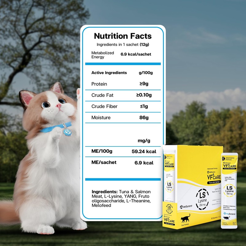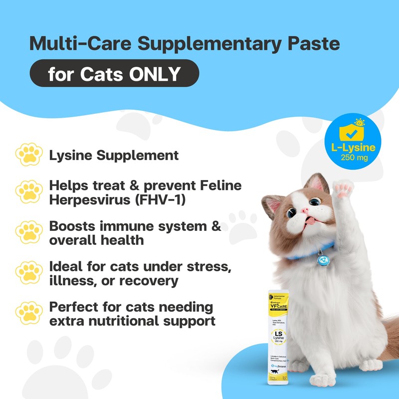 VFcare lysine for Cats l-lysine for Cats 250mg Tuna with Salmon Flavor Supplement Paste Supports Immunity FHV-1 Stress Recovery Digestion Calming no by-Products Vet Recommended 30 sachets