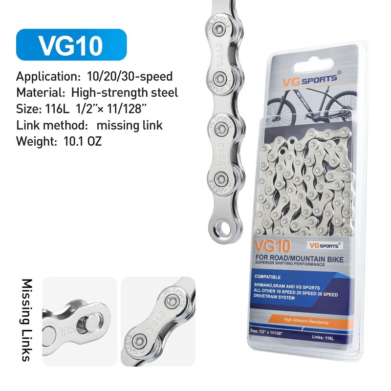 - 【Chain】8/9/10/11/12 speed chain. Links: 116/126 links; size: 1/2" X 11/128,1/2"X3/32;