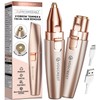 - GENTLE & PAINLESS: The 2-1 women's hair remover is suitable for daily use to keep up with hair regrowth and leave it smooth, specially designed for use on eyebrows, upper and lower lip, cheeks, chin, and neck. Works on peach fuzz or fine hair. Go slow with circular movements and it will do the job.