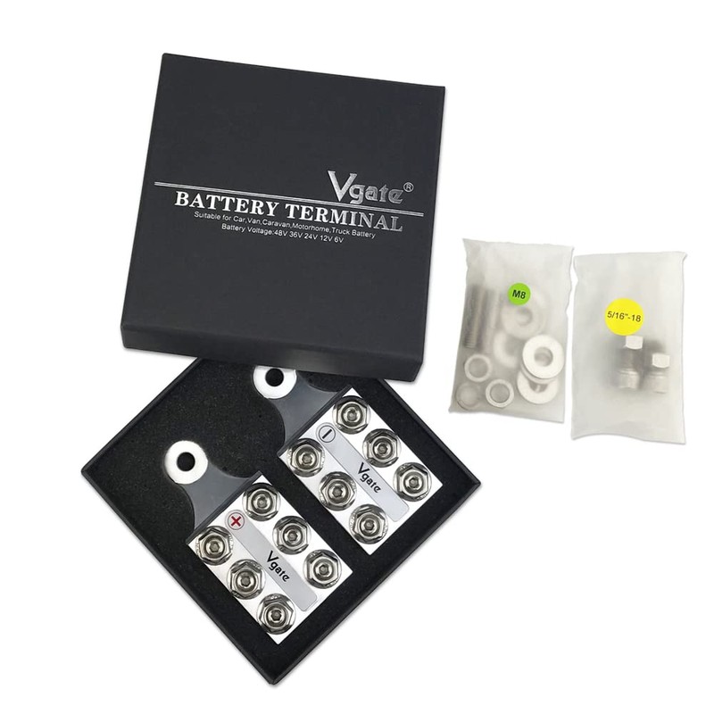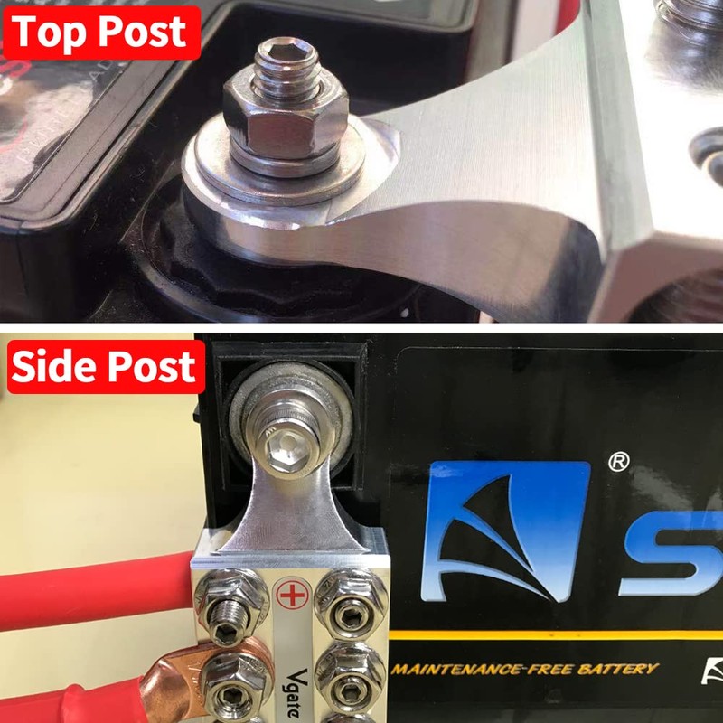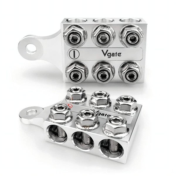 Vgate 12-Way Post Terminal Distribution Block Bus Bar, 8AWG up to 4/0(XL) AWG Gauge, for Lithium or AGM Lead Acid Battery with Bolt Down Ends or Threaded Studs, M8 or 5/16”-18