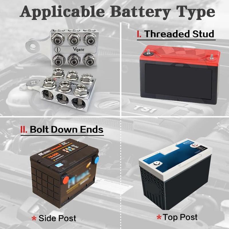 - - Battery Post Type: Bolt Down Ends or Threaded Stud. (Remark: Bolt Down Ends including Top Post and Side Post)