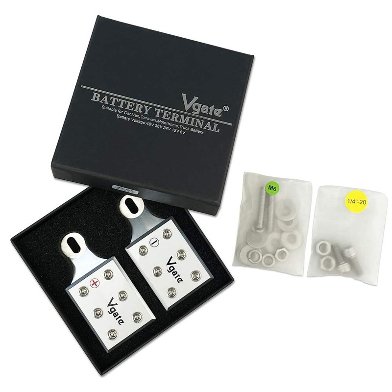 Vgate 6x1/0 AWG Gauge Post Battery Terminals, for Lithium or AGM Lead Acid Battery with Bolt Down Ends or Threaded Studs, M6 or 1/4”-20