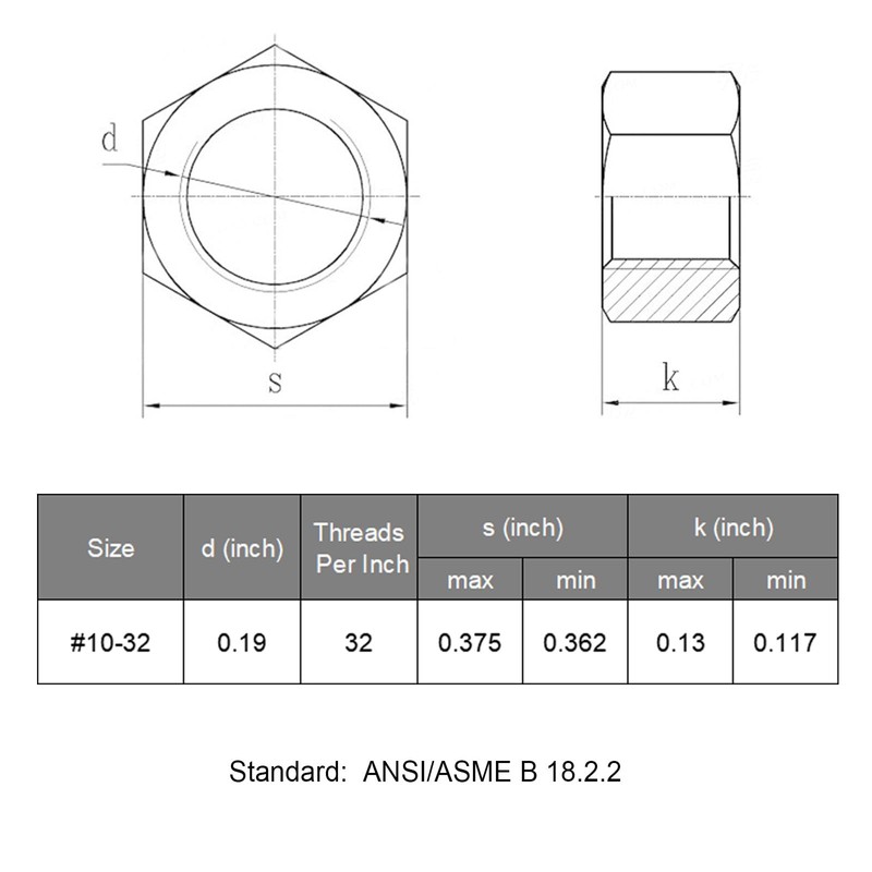 - PACKAGE INCLUDES: 150pcs #10-32 hex nuts. Standard SAE thread size,high precision, tight tolerance. Manufactured to ANSI/ASME B 18.2.2 Table 1-2 specification