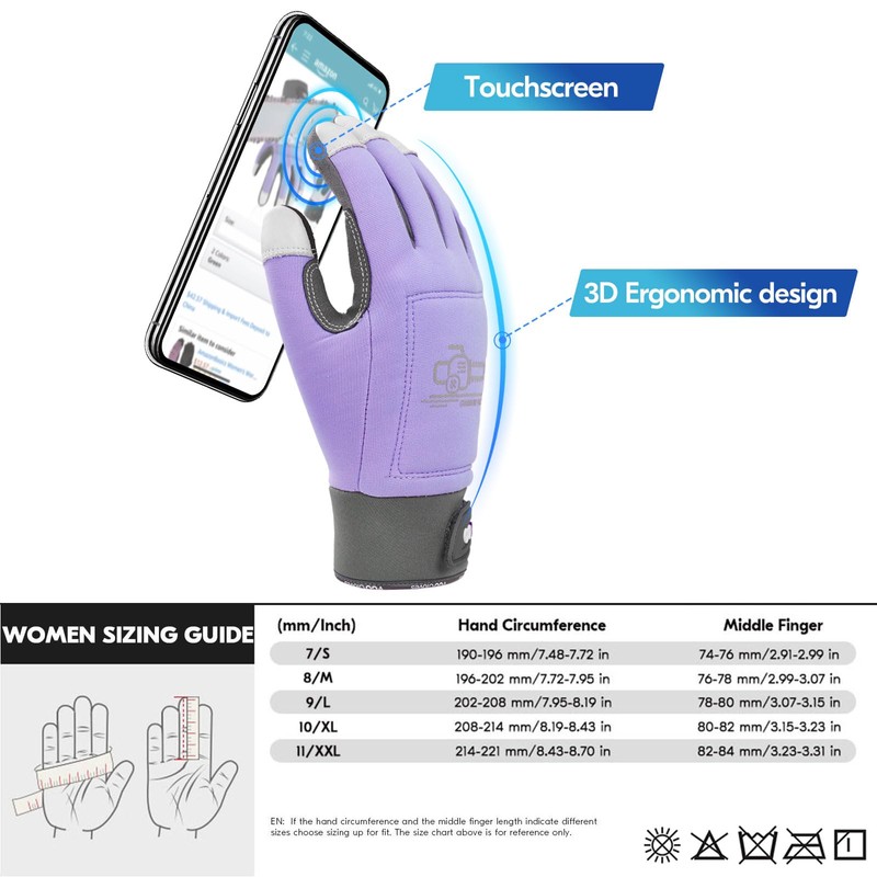 - TOUCHSCREEN COMPATIBLE & EXTENDED LONG CUFF - Touchscreen capable thumb, index and middle fingertips for smartphone control. 5cm extended neoprene cuff with hook and loop closure better keep dust, debris and dirts out. 45° angle cut at the finger junctions and pre-curved fingers ensure a tailored fit with amazing flexibility, breathability & comfort.