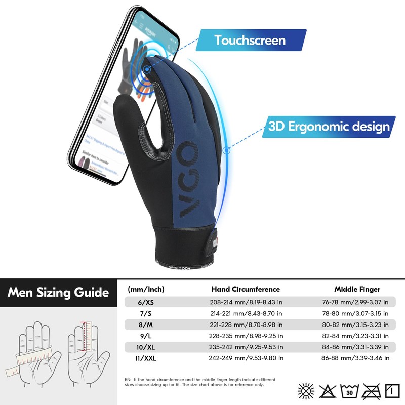 - Touch screen compatibility & ergonomic fit- the touchscreen-capable design of thumb, index and middle finger ensures that you do not have to take off the glove to operate your phone. 45 ° angle cut at the finger crossings and pre-curved fingers ensure a tailor-made fit with amazing flexibility, breathing activity and comfort