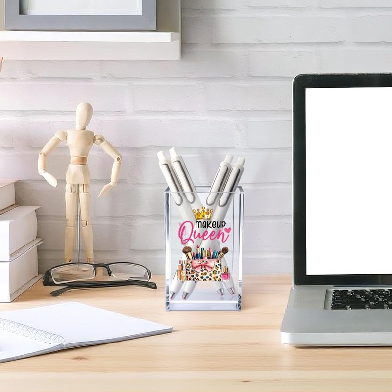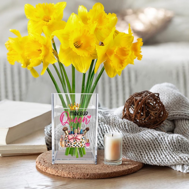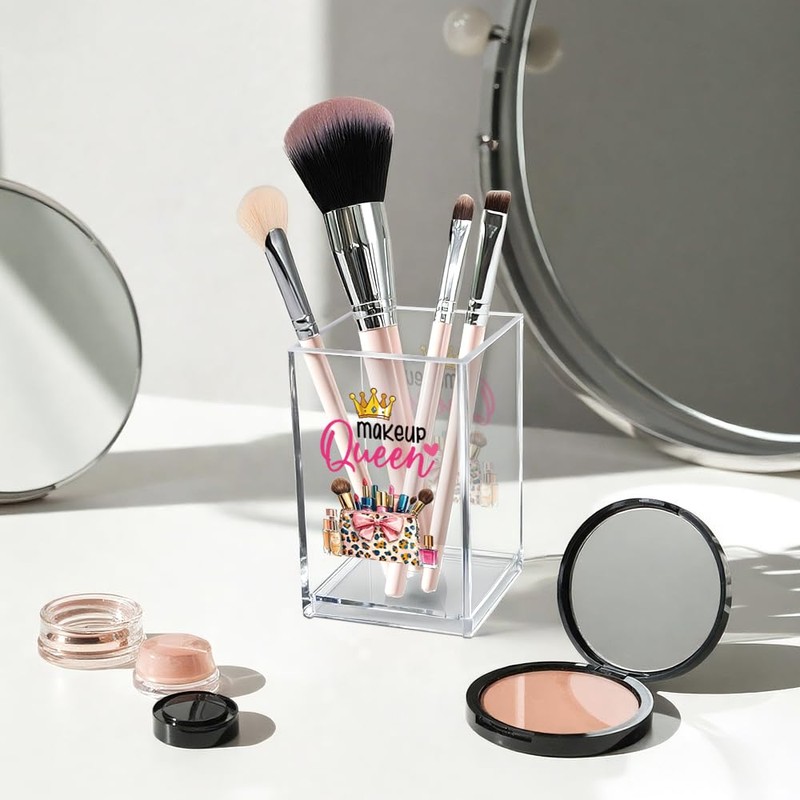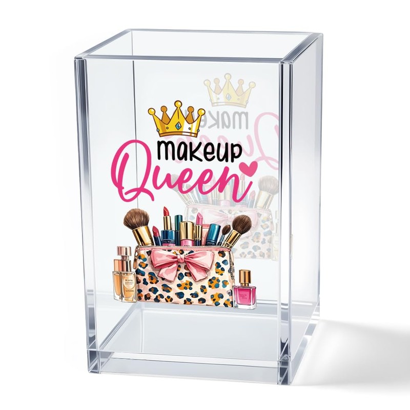 Vgrti Makeup Queen Acrylic Makeup Brush Organizer Holder, Makeup Queen Desk Acrylic Brushes Storage, Christmas Birthday Gifts for Women Mom Sister Colleague Boss Lady Make Up Artist