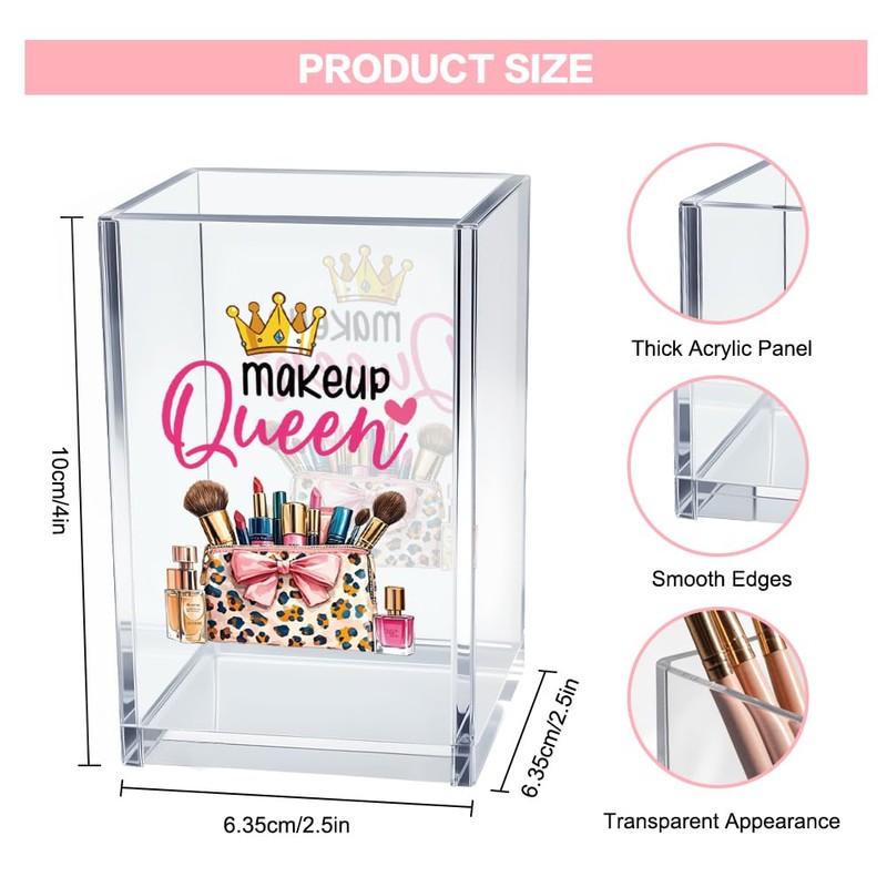 - Size: 2.5x2.5x4 inches, this organizer is made of high-quality shatterproof acrylic and is durable. It is small and does not take up space, allowing you to easily view and access your makeup brushes.