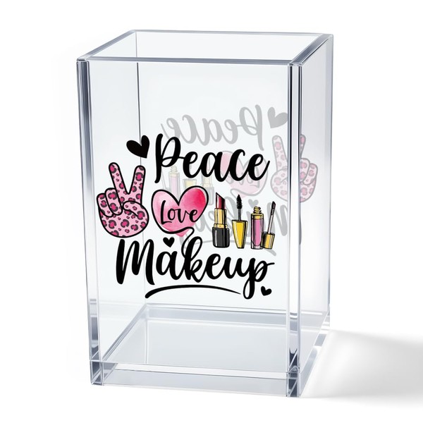 Vgrti Peace Love Makeup Acrylic Makeup Brush Organizer Holder, Make Up Artist Desk Acrylic Brushes Storage, Christmas Birthday Gifts Women Mom Aunt Sister Boss Lady Make Up Artist