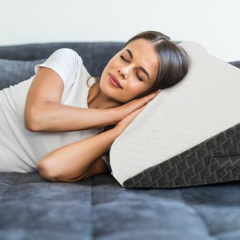 - [ VERSATILE USE ] --- Bed wedge pillow can be used for multiple needs such as relieving the pain in your leg, knee, snoring, neck and back pain and post-surgery ailments. The ergonomically designed wedge pillow is helpful for acid reflux, surgery recovery, GERD, heartburn, and other breathing issues.