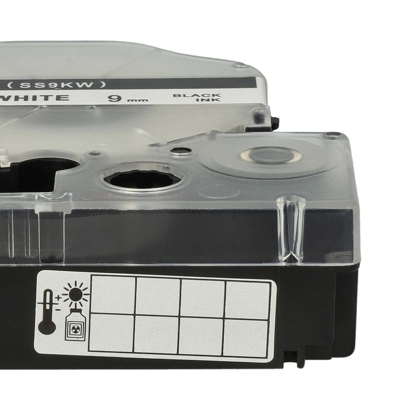- Font colour: black, tape colour: white, width: 9 mm, length: 8 m