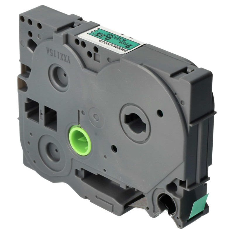 - Font colour: black, tape colour: green, width: 9 mm, length: 8 m