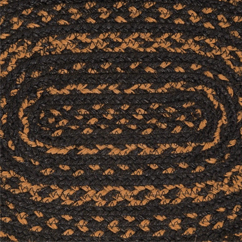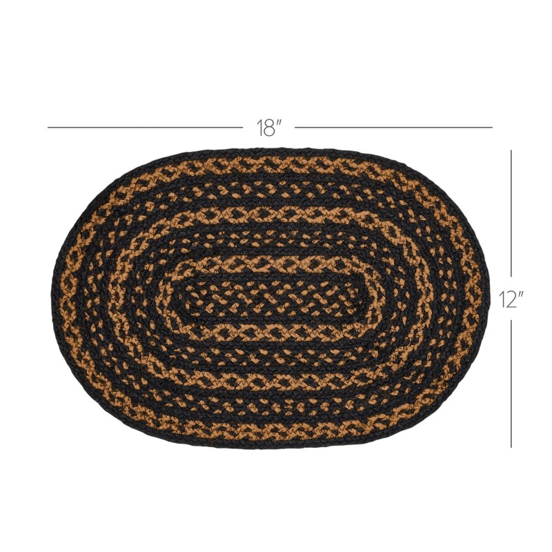 Create a warm, traditional table for friends and family to gather round with deep, primitive color and classic texture. The Black & Tan Jute Placemat includes an individual oval placemat measuring 12x18 inches made from a premium Jute blend. The rich texture of braided jute is given a rustic feel with country black and dark tan tones in alternating rows for traditional country style. Complete your tabletop decor with other pieces from the Black & Tan Collection by VHC for vintage farmhouse style.