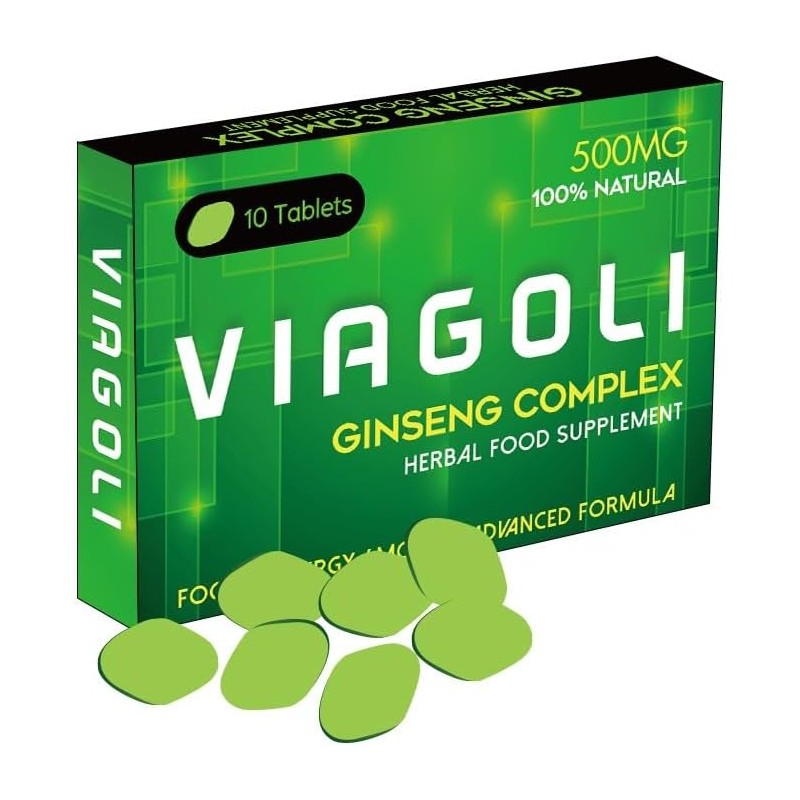 VIAGOLI Green- Ginseng Complex - The Most Effective Natural, Powerful and Fast Acting Food Supplement for Men! - (Pack of 10 Tablets)