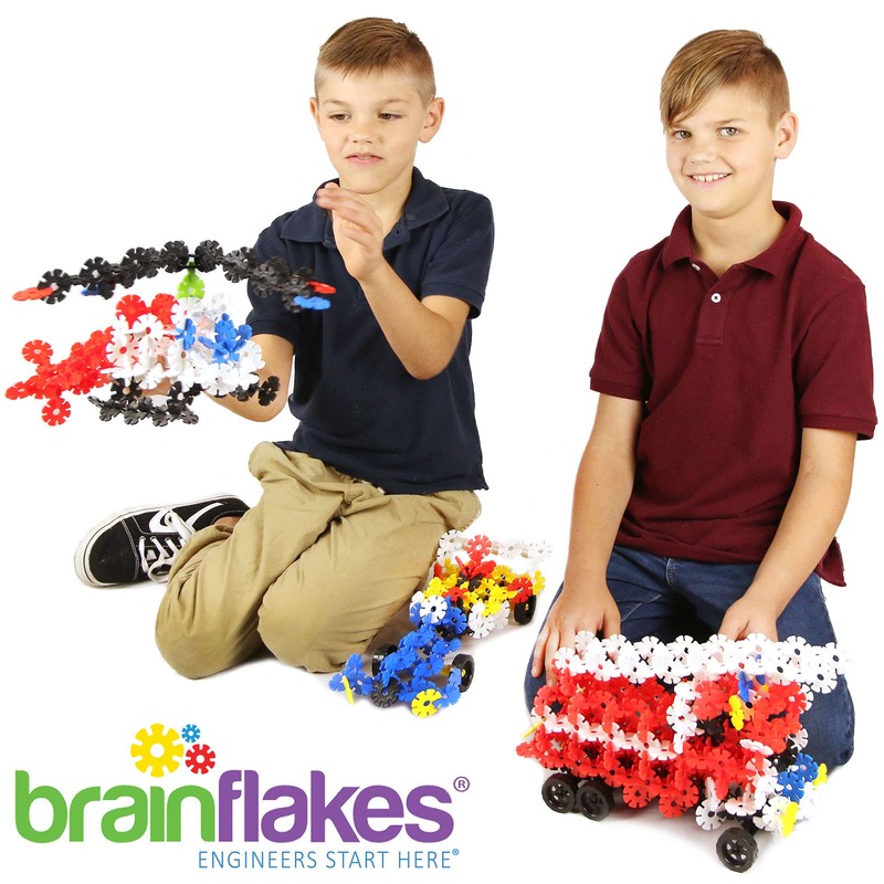 Wheels and other special pieces are included to allow the fire truck and racecar to roll, and the helicopter blades to spin! Instructions are included in each set to guide Braingineers along.