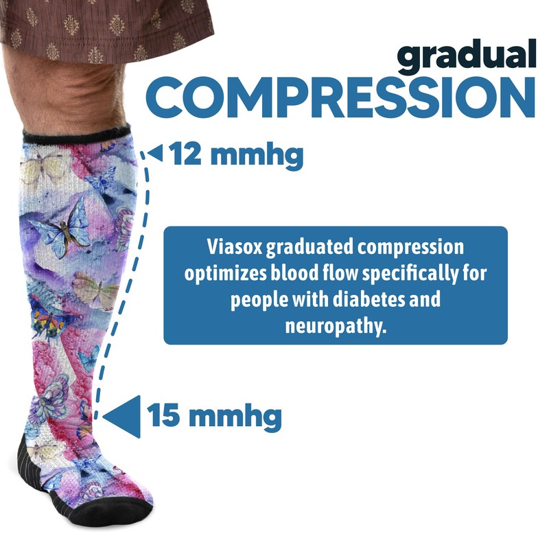 Viasox 3 Pack Compression Socks Women & Men, Circulation Support, 12-15mmHg Neuropathy, Flower Power, L
