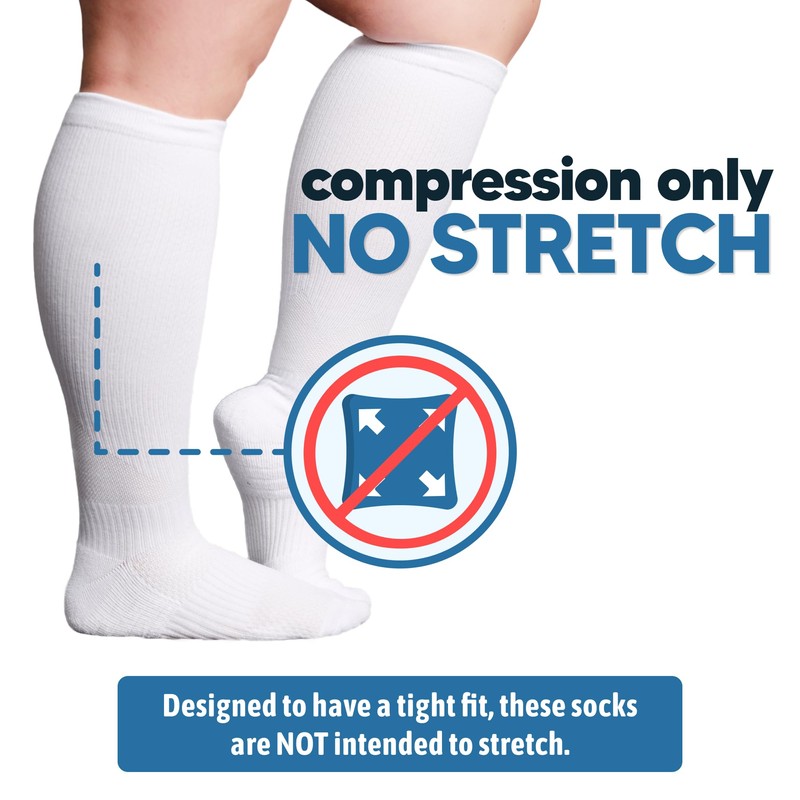 - KNEE HIGH COMPRESSION SOCKS FOR MEN AND WOMEN : Fits calf sizes up to 18 inches comfortably with a mild graduated compression. Designed for ease of use. Ideal for travel and flights provideing excellent