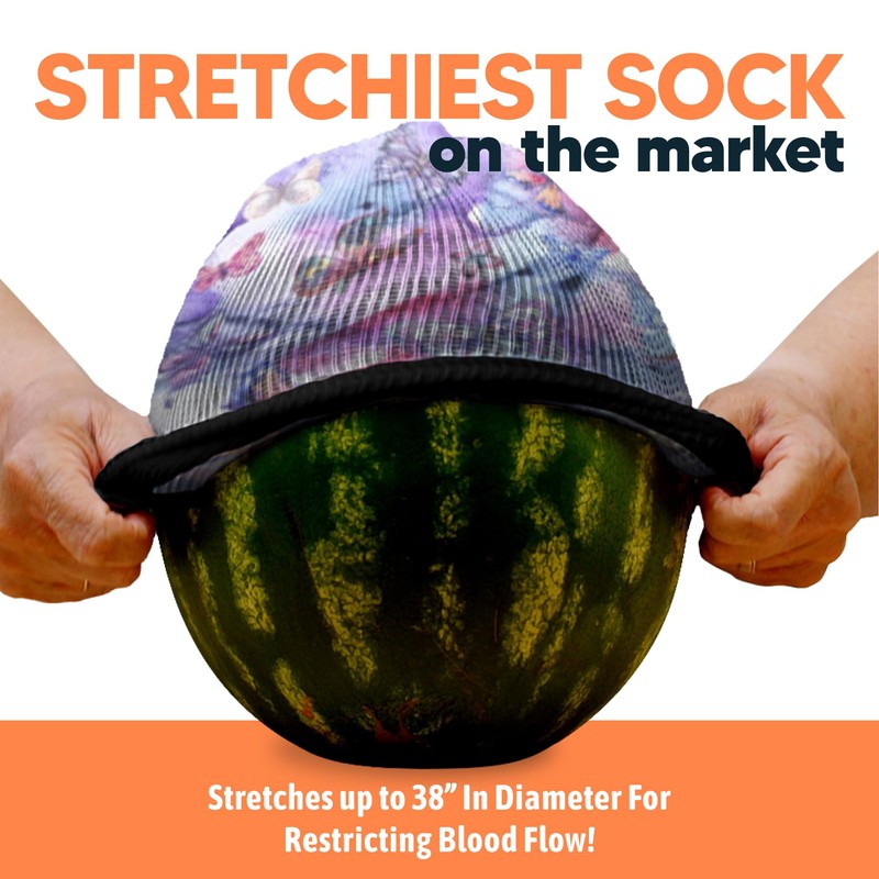 - STRETCH UP TO 30 INCHES : NOT intended to compress! Prevent painful sock marks and pressure on the legs. Our design eases edema and swelling, providing all-day comfort for those with diabetes.