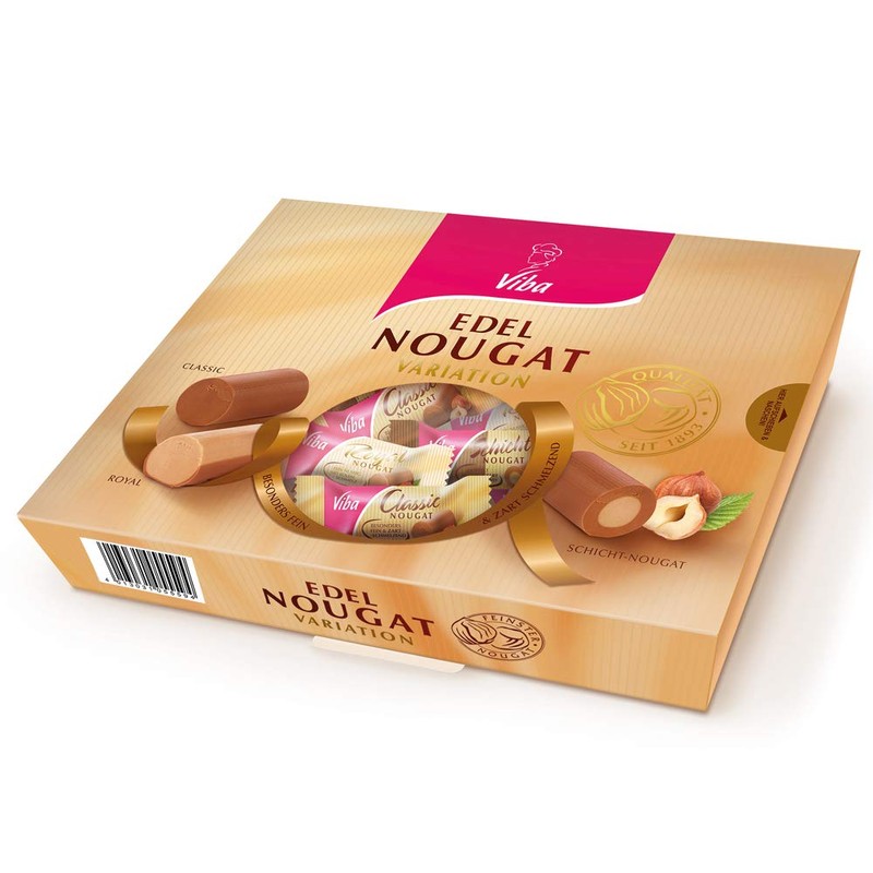 - Viba Edel Nougat Selection Classic Royal Layer Elegant Nougat Variations with a selection of delicately melting minis. Royal Nougat - Classic Nougat - Layer Nougat Content: 150g (15 Minis)
