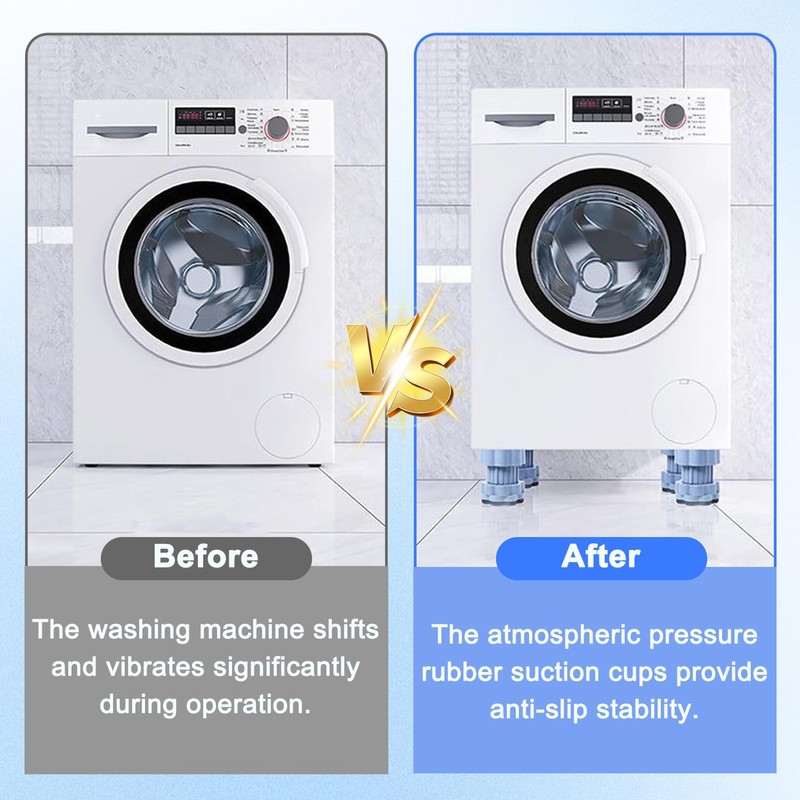 - Widely used: vibration damper washing machine can not only be used for washing machines, but also for household appliances, table legs, cabinet legs, sofa legs, tumble dryer vibration protection mats. To make it even more comfortable, our cushions are designed to be used in all standard four-legged washing machines and dryers.