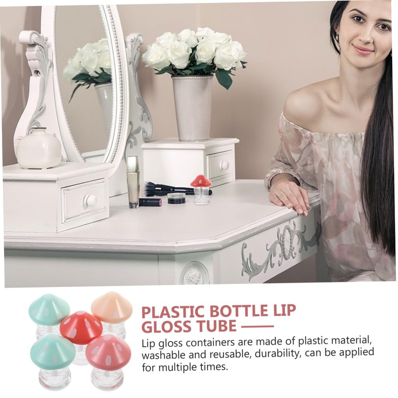 VICASKY 5pcs Mushroom Lip Gloss Tubes Wand Refillable Lip Balm Containers Por...