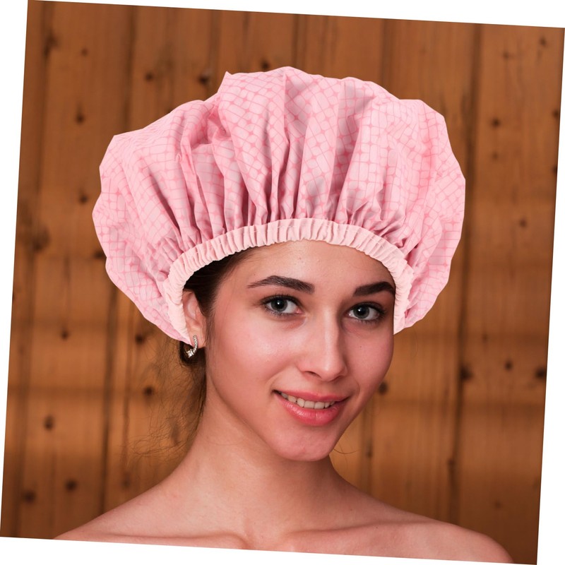 -Color:Pink waterproof shower cap