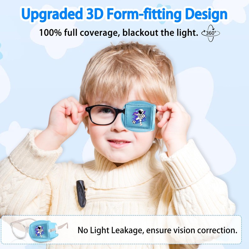 VICHERIA Eye Patches for Kids, Boy Girl Eyes Patch for Glasses, Medical Patch for Kid with Lazy Eye (Blue Astronaut, Right)
