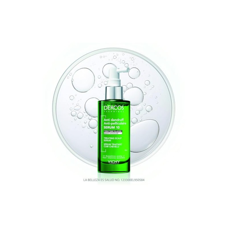 - Sérum leave on que actúa sobre 10 problemáticas relacionados a la caspa visible entre lavadas.