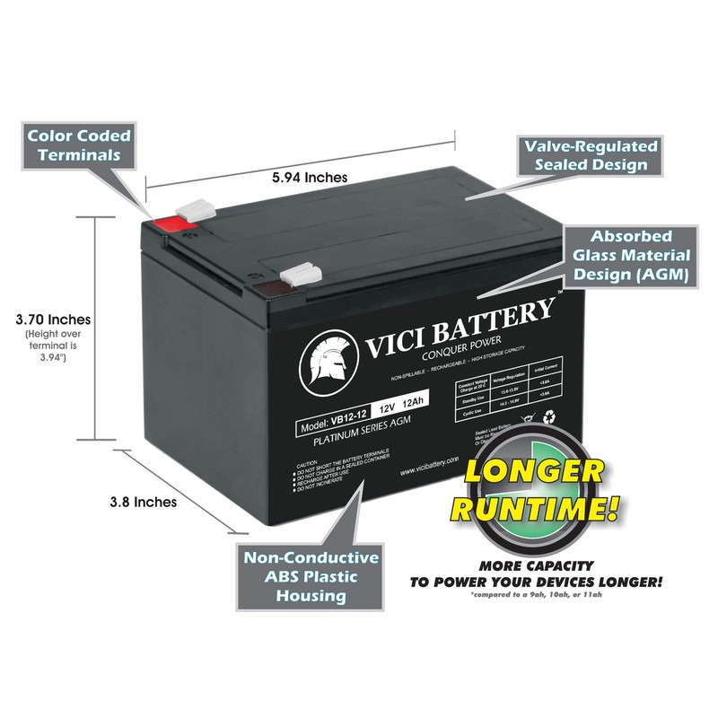 - GENUINE VICI BATTERY - VB12-12 SLA is a 12V 12AH Sealed Lead Acid (SLA) rechargeable maintenance free battery. Pack of 6