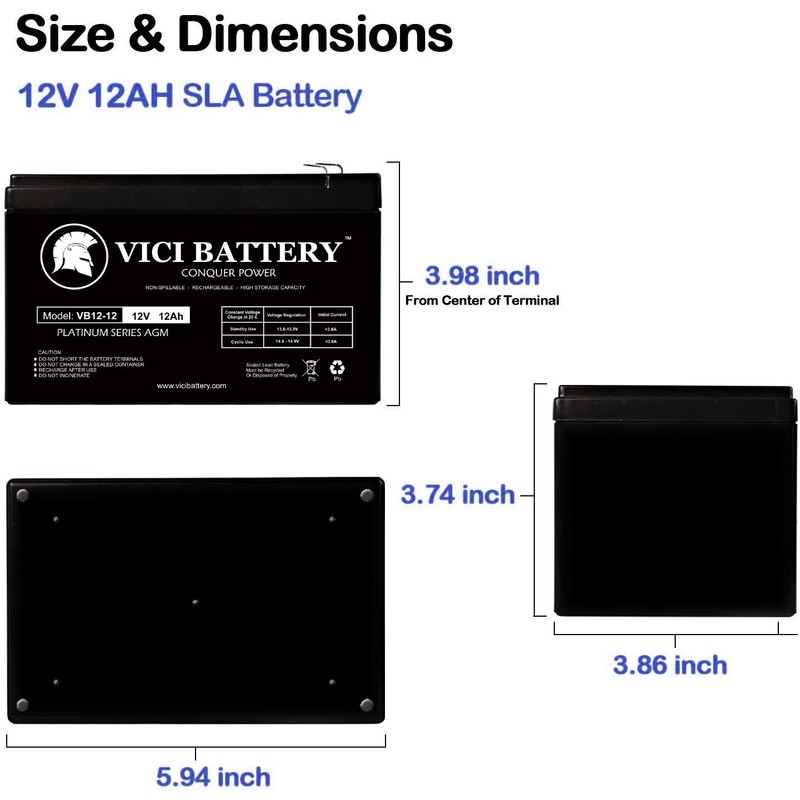 - GENUINE VICI BATTERY - VB12-12 SLA is a 12V 12AH Sealed Lead Acid (SLA) rechargeable maintenance free battery. Pack of 6