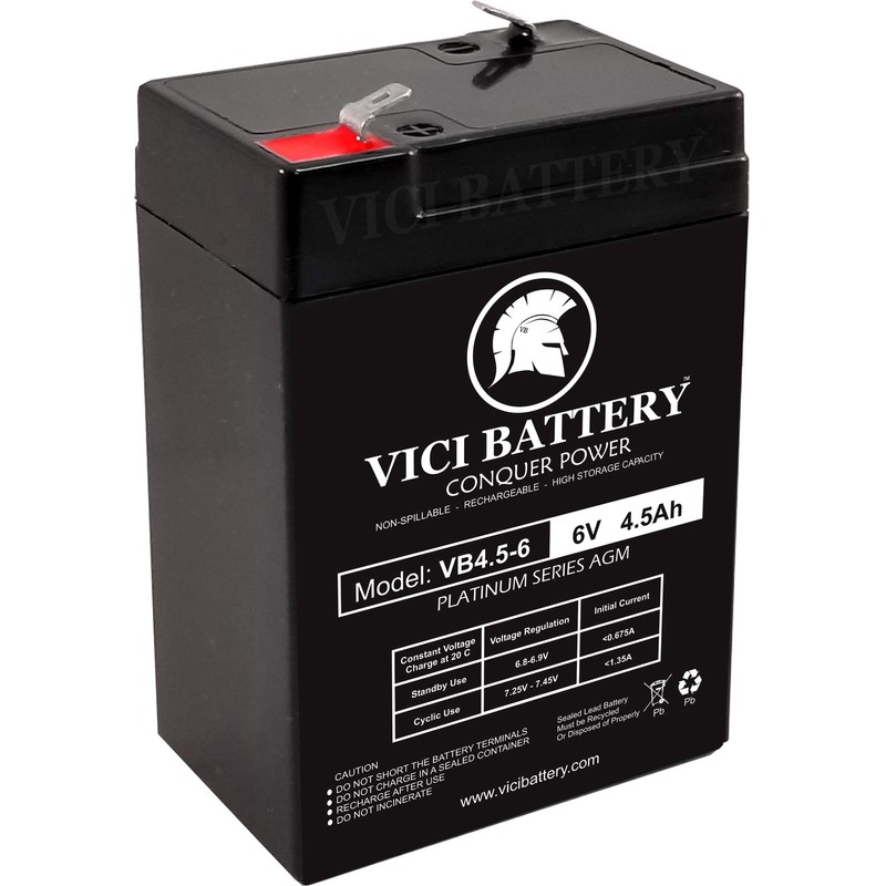 - GENUINE VICI BATTERY - VB4.5-6 SLA is a 6V 4.5AH Sealed Lead Acid (SLA) rechargeable maintenance free battery. Pack of 1