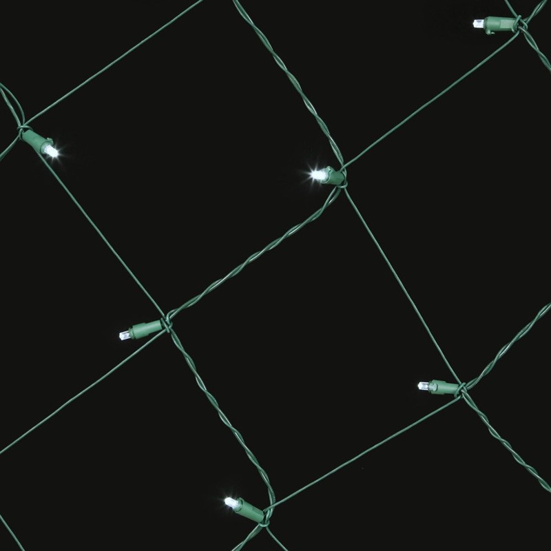 Vickerman 150 Light Wide Angle LED Net Light Set Pure White Lights on Green Wire