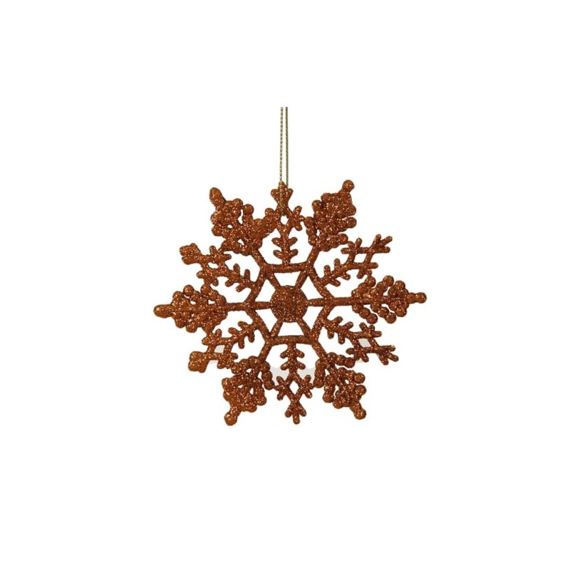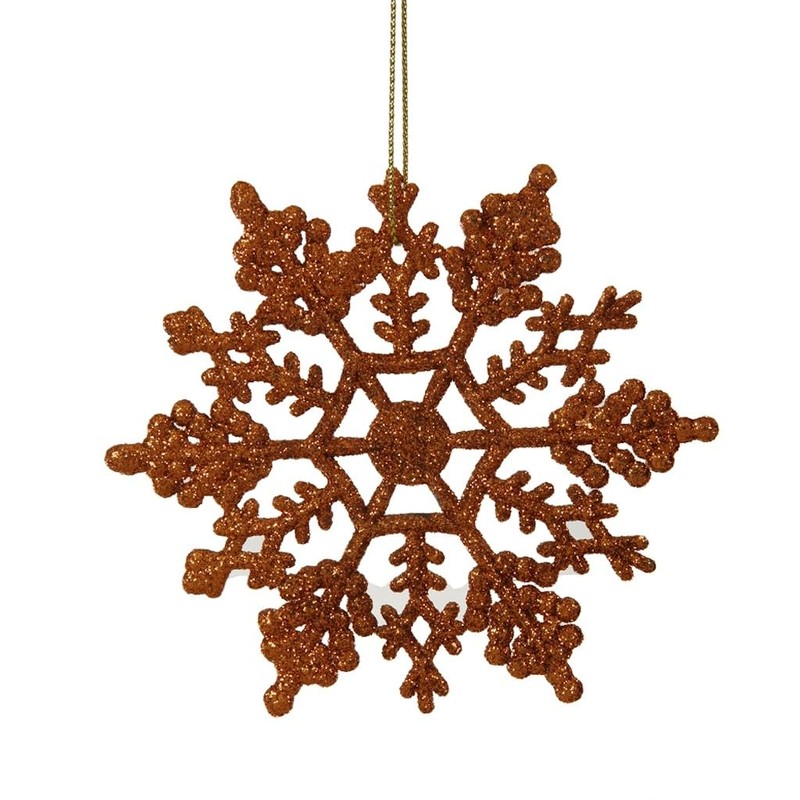 4" - Burnished Orange - Glitter - Snowflake - Shatterproof | Vickerman Christmas Tree Ornament (24 pack)