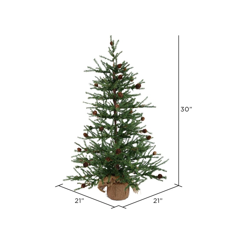 Vickerman 30" Caramel Pine Artificial Christmas Tree Unlit, Seasonal Indoor Home Decor with Decorative Burlap Base