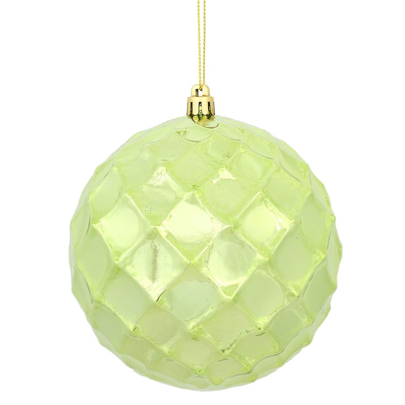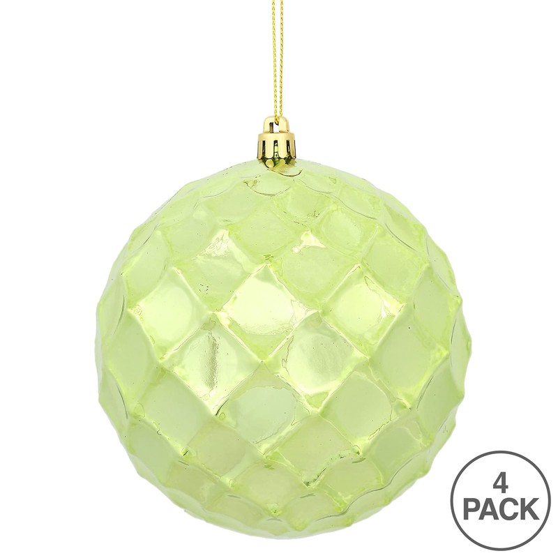 Vickerman 4.75" Celadon Shiny Diamond Bauble Christmas Ornament, Set of 4