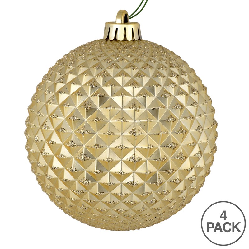 Vickerman 6" Champagne Durian Glitter Ball Ornament, 4 per Bag