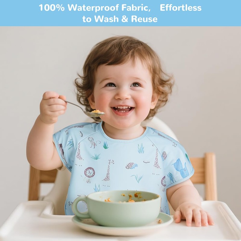- Waterproof and dirt-repellent baby bibs: Our bibs are made of waterproof and oil-resistant PU material. Whether soup, puree or sauce - simply wipe with a damp cloth and they are fresh. This reduces cleaning effort after eating.