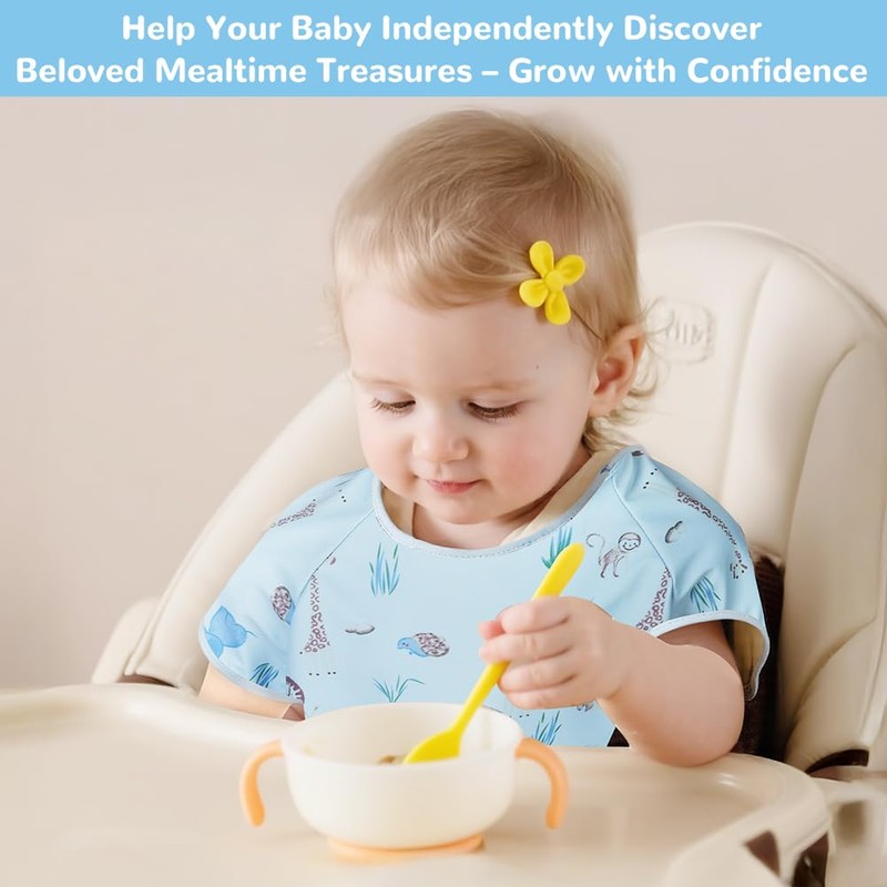 Vicloon Bib with Short Sleeves, Washable Full Body Bib for Baby Feeding, Baby Bib with Crumb Tray, Measuring Proof, Machine Washable & Waterproof, Unisex for Babies, Zpp