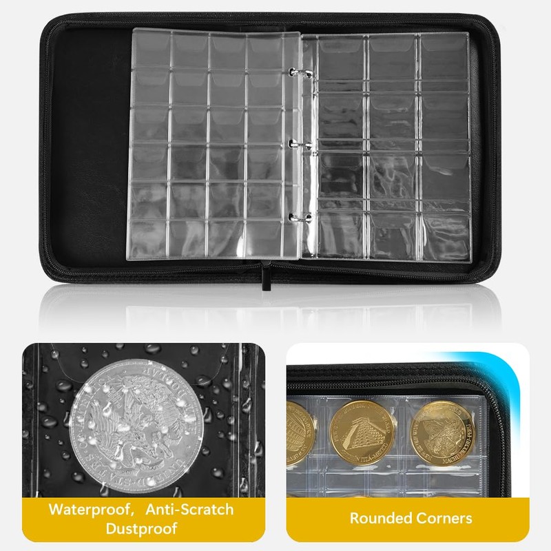 Coin album with zipper and non-slip cover pocket, coins are not easy to slip out, easy to carry.