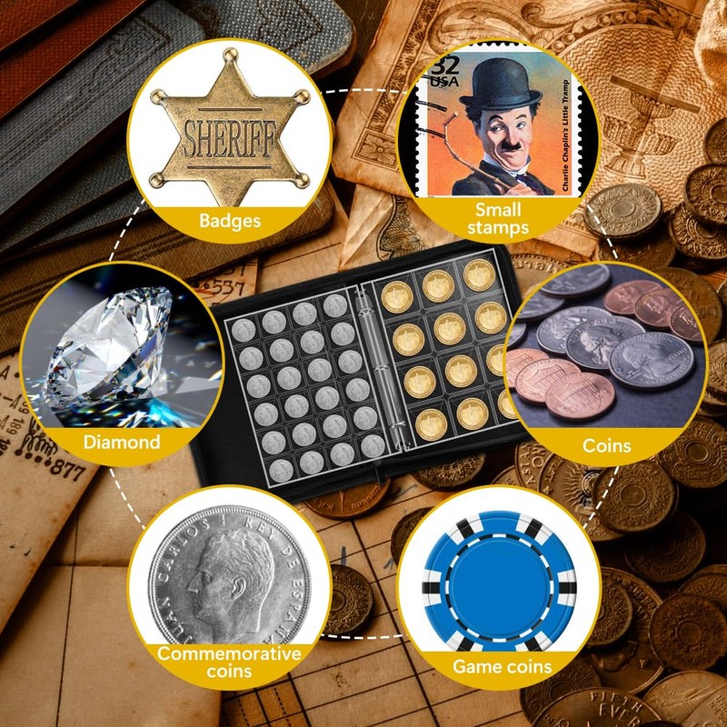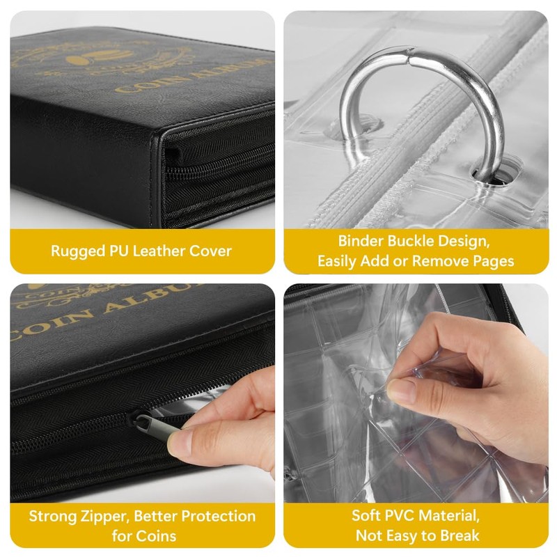 - 【Widely applicable】 The coin album has a built-in metal mechanical ring page folder, which allows you to easily add or remove pages. It can be used to collect coins, stamps, medals, badges, etc. It is an excellent choice for people who are just starting to collect coins, stamp collectors or professional coin collectors.
