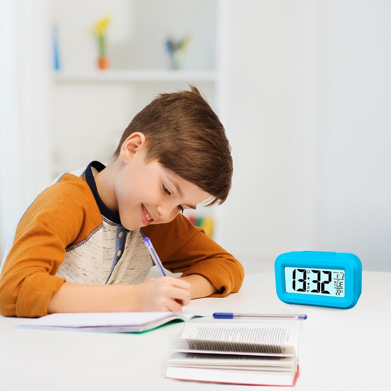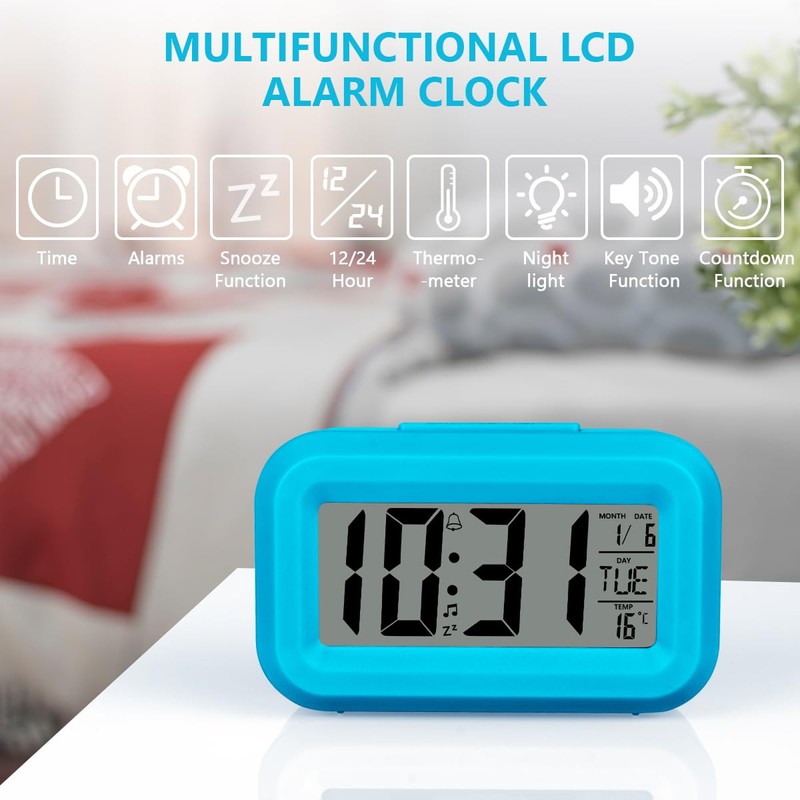 Vicloon Digital Alarm Clock Bedside, LED Display Clocks with Adjustable Snooze 12/24Hr,Temperature, Date,Timer, Light control Portable Alarm clocks for Bedroom Home Office Kitchen(Blue)