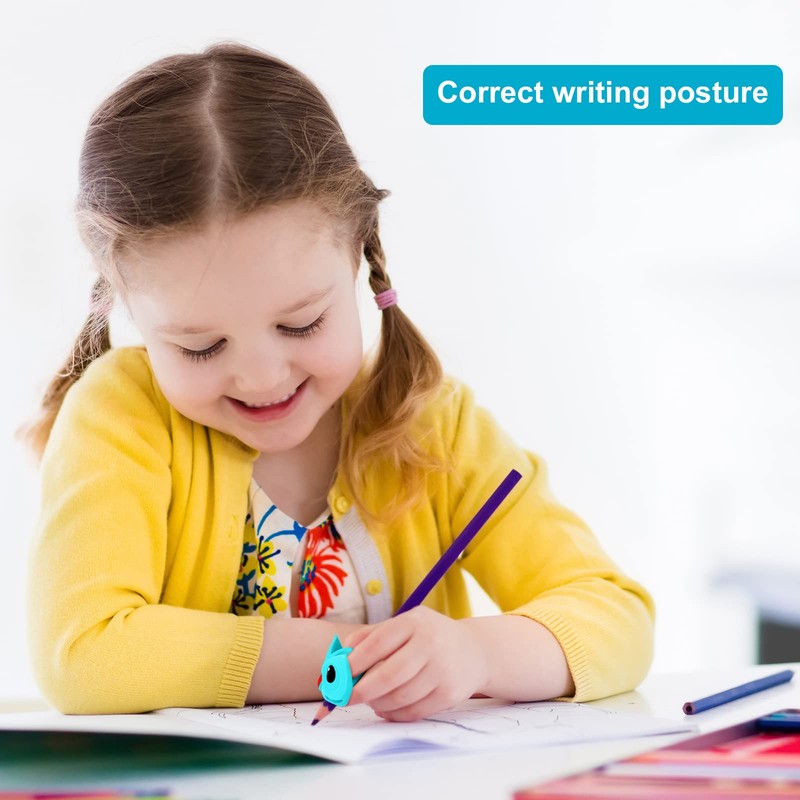 - Package includes: 3 Owl Pencil Grips in Different Colors and 6 Cute Cartoon Pen Cap Clips. The ergonomic writing aid for children automatically and gently brings the finger to the correct writing position, and the cap clip acts as a nib protector, pencil extender and paper clip.