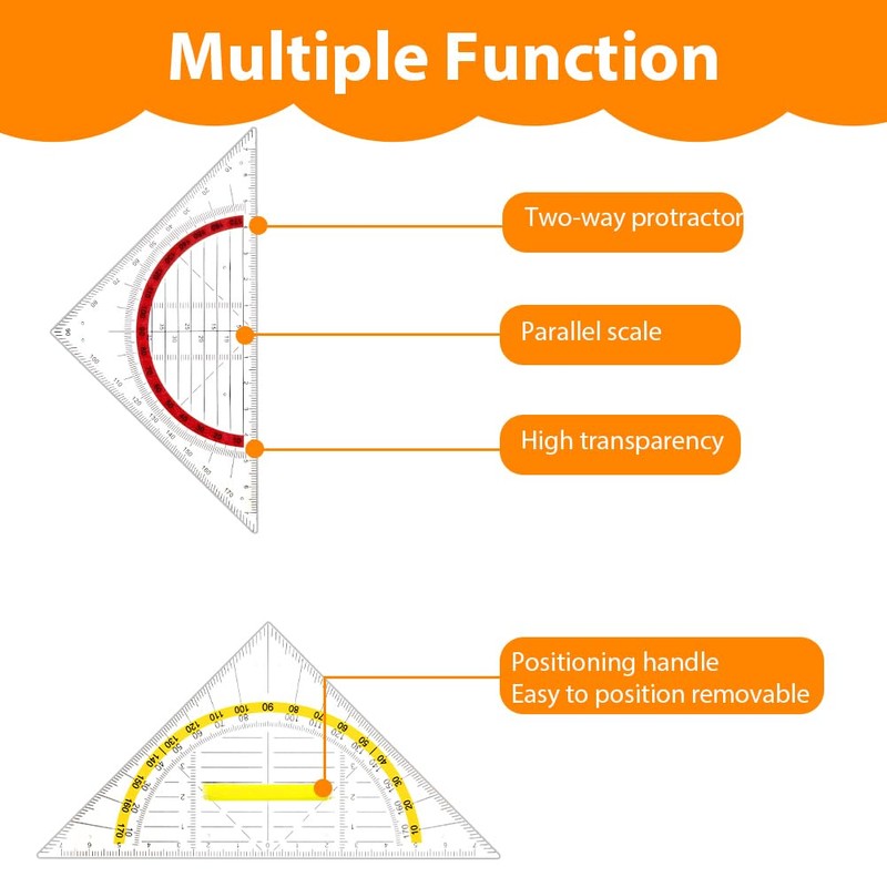 • ✅【Has many uses】These clear geometric plastic set squares are suitable for learning and working and can also be used for a variety of drawing, measuring and technical tasks. A practical and thoughtful birthday gift for students, teachers and engineers.