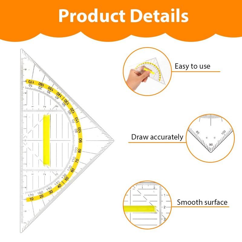 • Easy to carry: the transparent geometry triangle is moderate, the length is 15.7 cm, lightweight, easy to carry and store, can be easily put in a school bag, pencil case, briefcase or paper bag, does not take up space and is easy to carry.