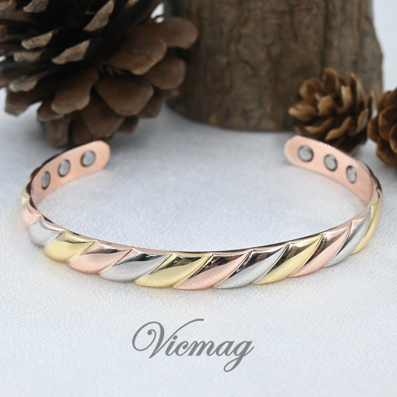 Vicmag Copper Bracelet for Women Magnetic Bracelet 9X Ultra Strength Magnets 99.99% Solid Pure Copper Adjustable Size with Gift Box (Tricolour Diamond)
